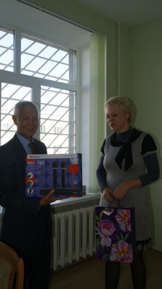 Представители Невинномысского института экономики, управления и права преподнесли детскому творческому коллективу микрофоны для дальнейшего творчества.Гайнулина С.Н., руководитель центра переподготовки и повышения квалификации