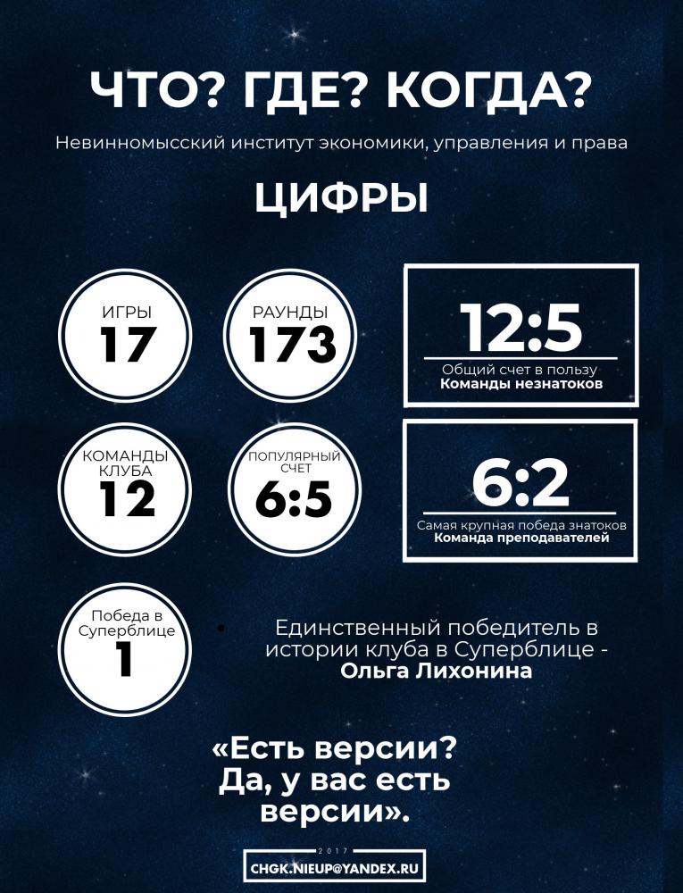 21.12.2017В Невинномысском институте экономики, управления и права завершилась Зимняя серия игр интеллектуального клуба «Что? Где? Когда?» 2017 года.