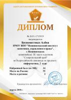 Беспоместных Алена (группа ИД-14Б) заняла 3 место в регионе «Ставропольский край» во Всероссийской олимпиаде по предмету Информатика.