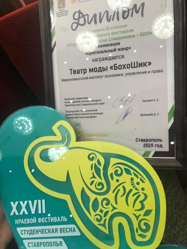 Театр моды «БохоШик» стал лауреатом III степени краевого фестиваля «Студенческая весна Ставрополья — 2019» в номинации «Оригинальный жанр». Поздравляем наших студентов и желаем им побед в дальнейших конкурсах!Середа Милана, отдел воспитательной работы